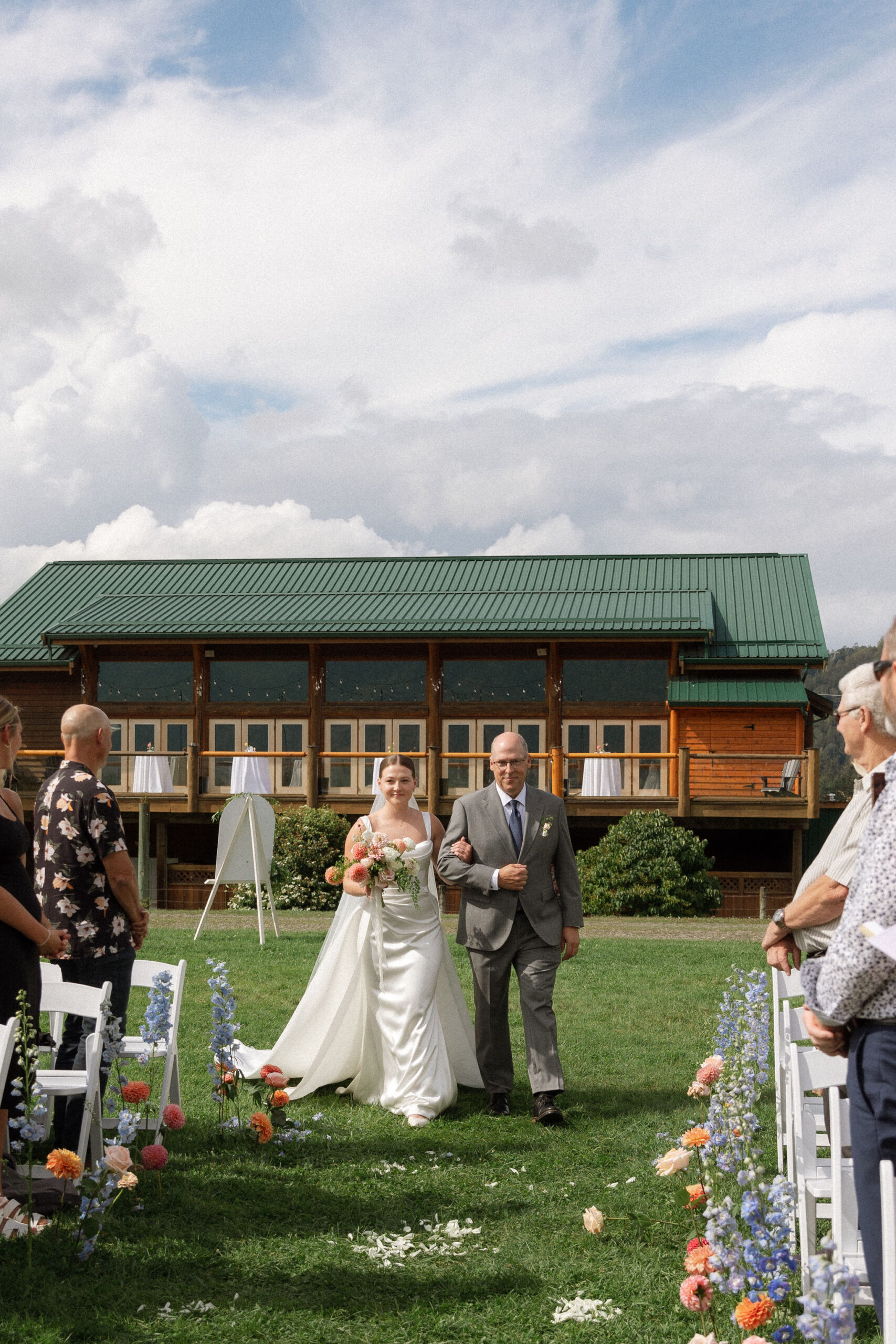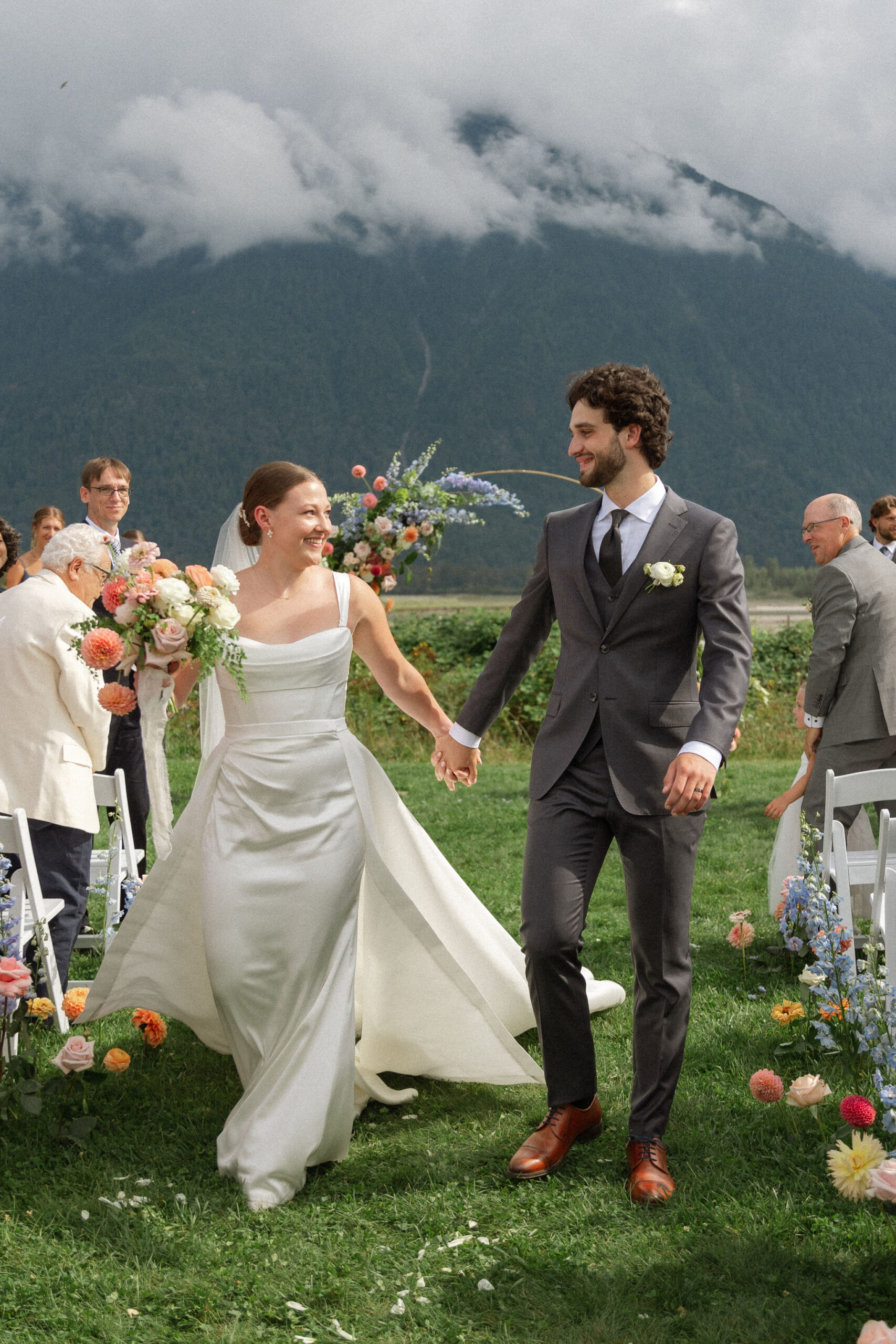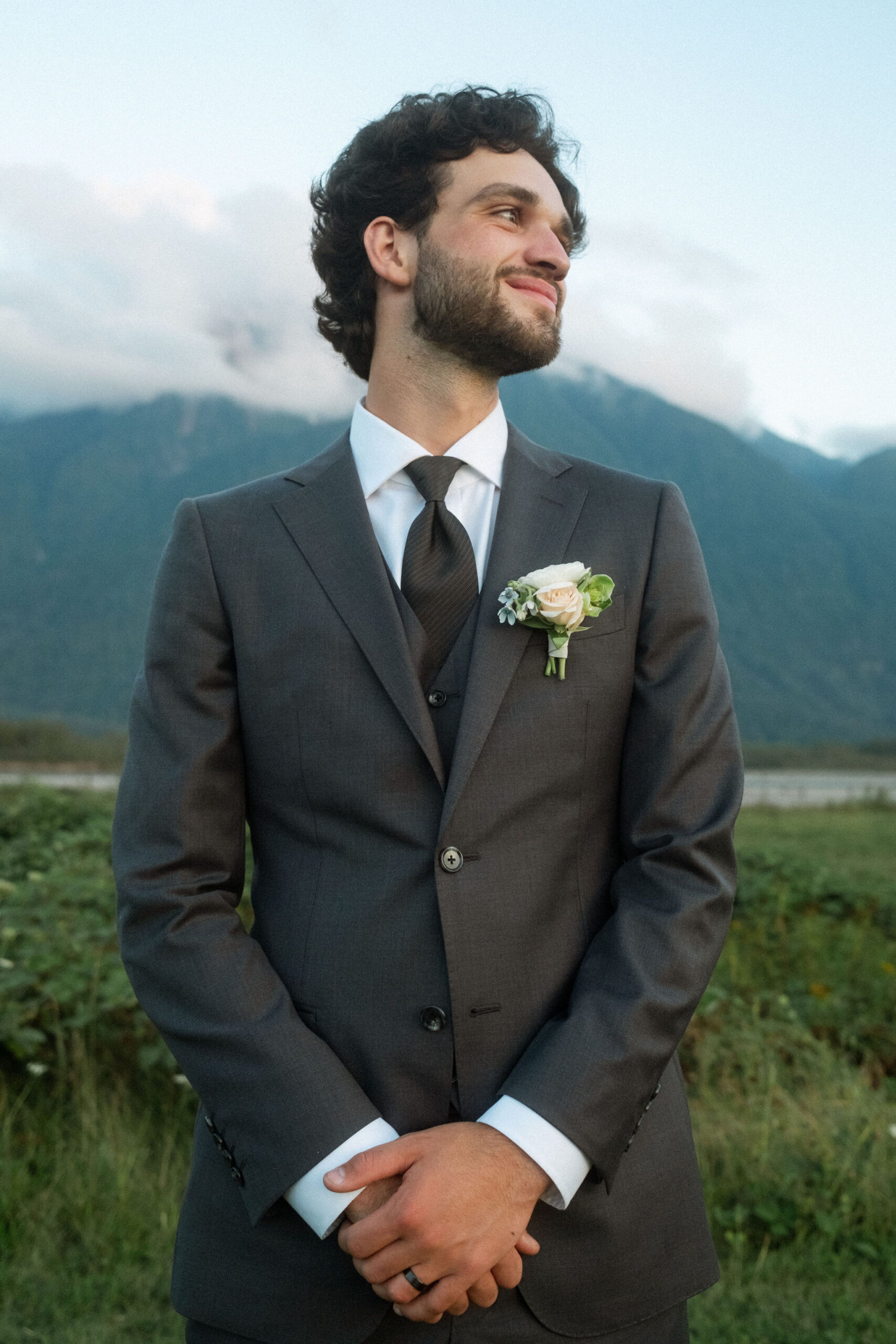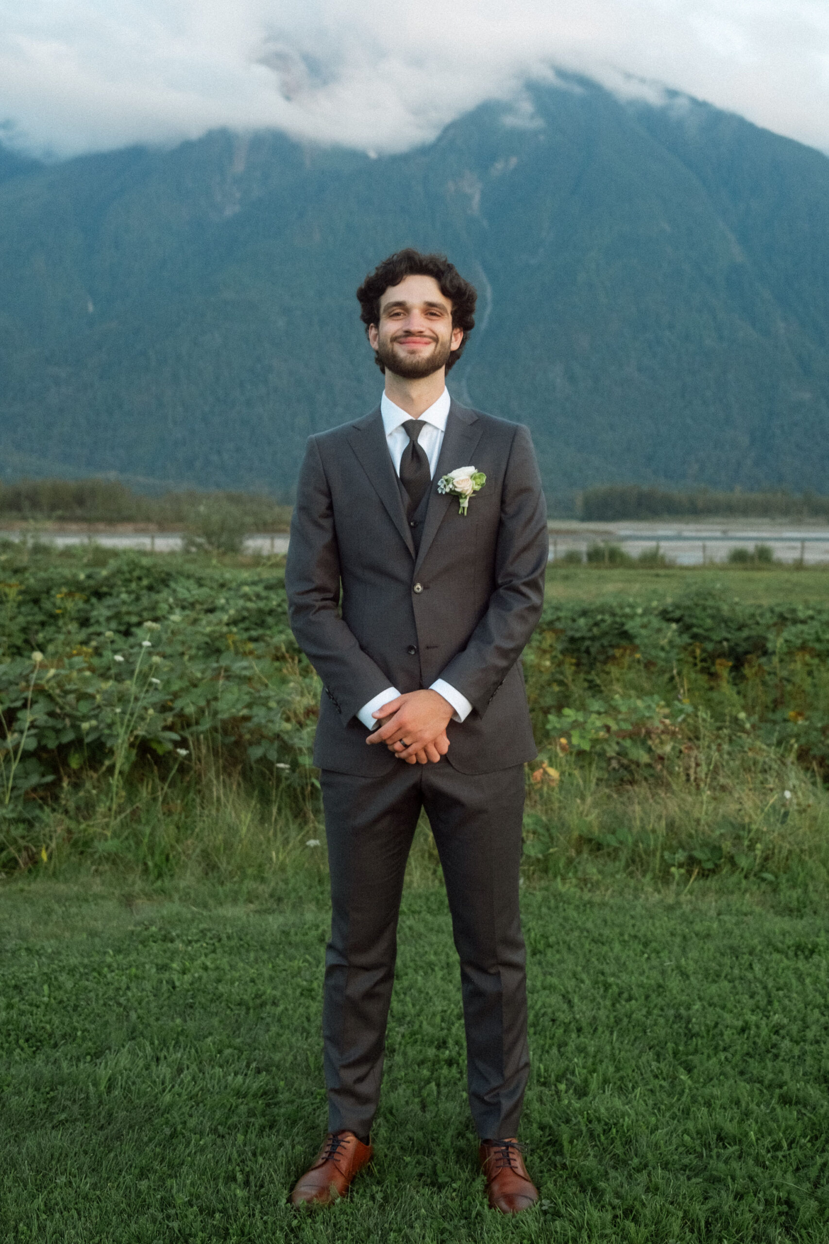Grace’s ethereal gown from Everly Bridal in Vancouver was a showstopper. With delicate lace detailing and a flowing silhouette, it perfectly complemented the natural beauty of the venue and added a touch of whimsy to the day.